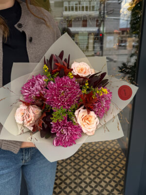 Coroana funerara cu trandafiri si miniroze (55cm)